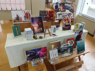 図書室では、読書の秋に向けて、レイアウトが変わりつつあります。「映画と本」というテーマで、図書室の入り口に読んでほしい本が準備されています。子どもたちにも興味がある映画から本を選んでほしいと思います。