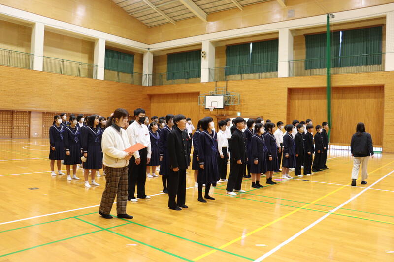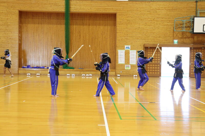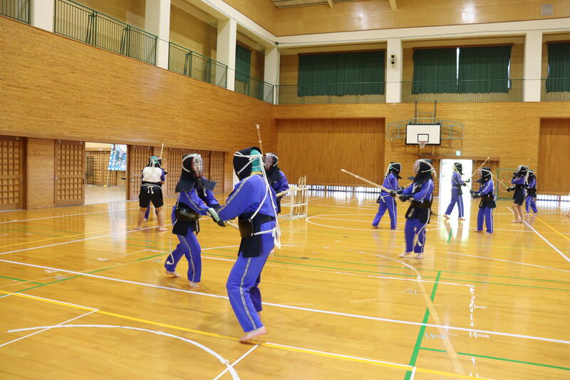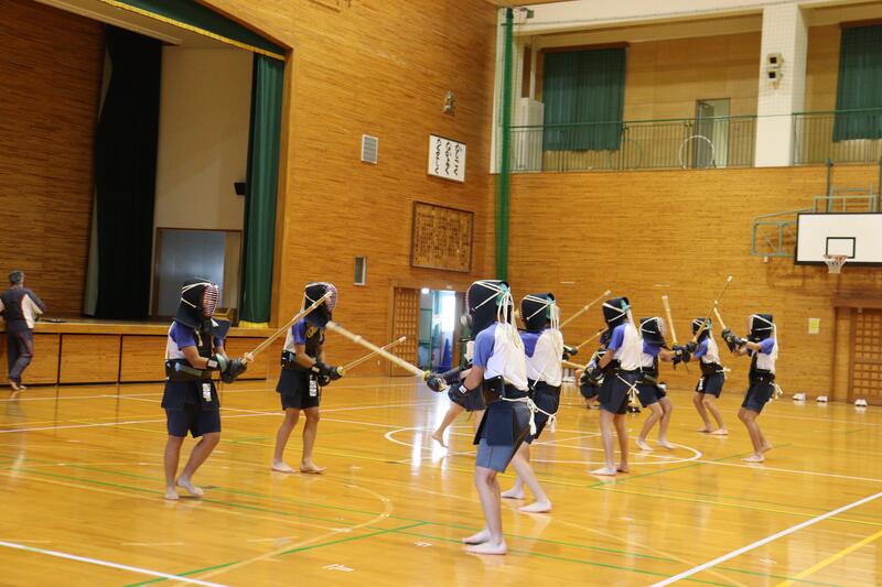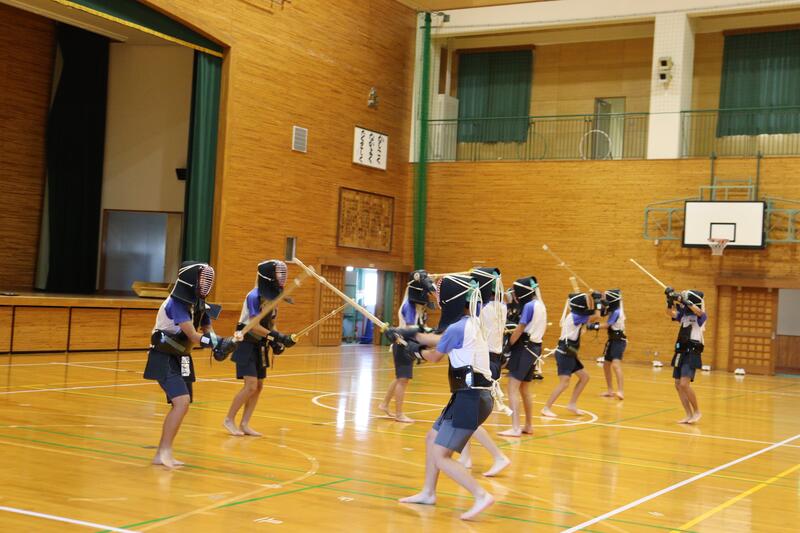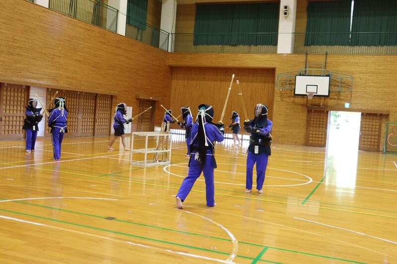 1時間目、体育館から勇ましい声が聞こえてきました。のぞいてみると、中学3年生が体育で剣道をしていました。防具をつけて、凛々しいです!