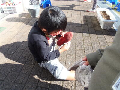教室に入る前に上靴をきれいに拭いて上がりました。