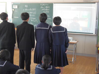 松橋支援学校と中学1年生が交流しました。和やかな雰囲気で楽しい時間を過ごしました。