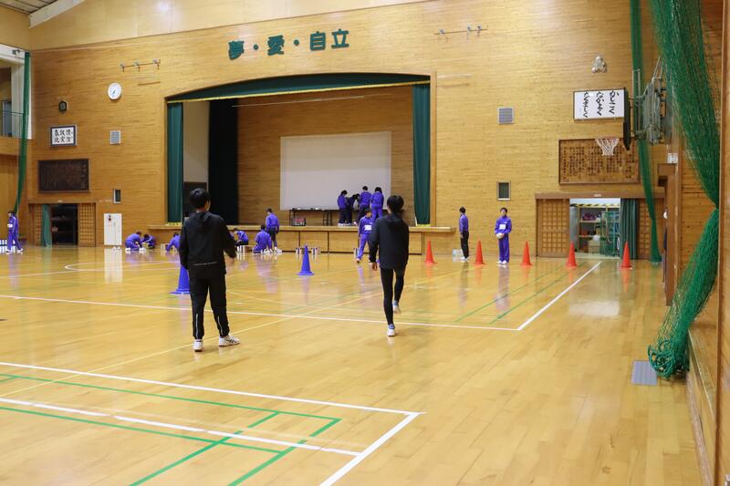 今日の朝の全校体育の様子です。火曜日、木曜日は3年生も一緒に活動しています。