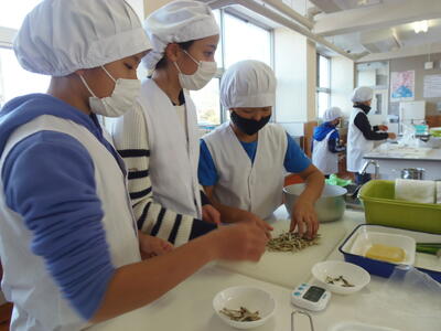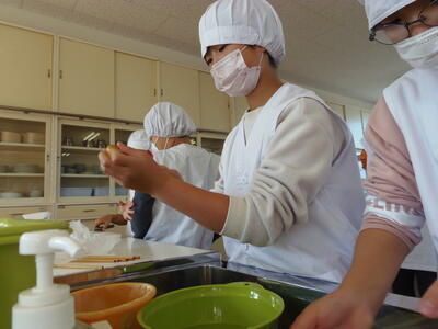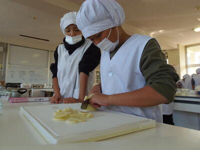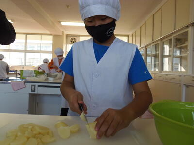次にジャガイモの皮をむきます。みんな手慣れていて、家庭で手伝っている子が多いみたいです。