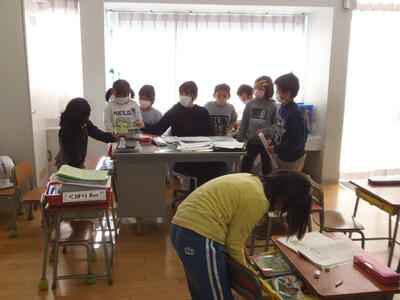 4年生も先生たちと話をしたり、遊んだりしていました。また、本をよんだり、ゲームをしたり、楽しそうに遊んでいました。