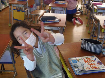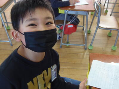3年生も担任の先生とプリント確認をしていました。他には、私に気づいて笑顔で話しかけてくれました。