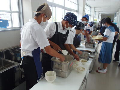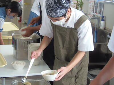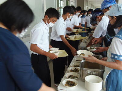 係の合図で配膳が始まります。整然と短時間で終わりました。