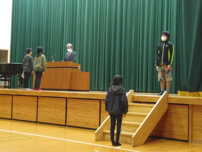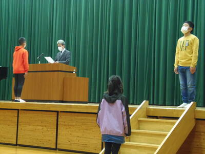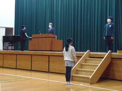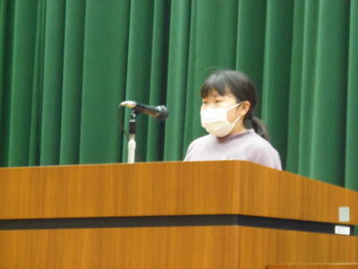 6年生を代表して、内田さんが「6年生で頑張ったことと、中学生で頑張りたいこと」を発表してくれました。