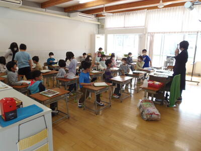 担任の先生から通知表や学級だよりを受け取ったり、春休みの過ごし方の確認をしたりされていました。