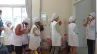 5年生の当番の児童が、給食室に給食を取りに来てあいさつをしている様子です。