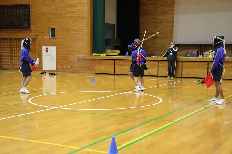 中学3年生はなんと2時間連続の体育でした!持久走のあとは、剣道の授業。今日は、これまでの学習を生かして、試合をしました。審判も生徒がします。