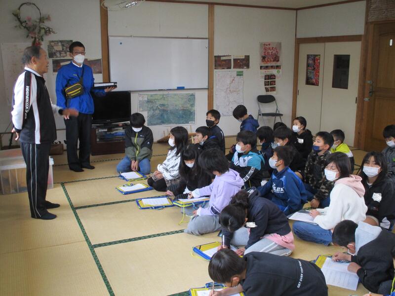 小学4年生は宮川公民館で地域の伝統芸能である「虎舞」について学びました。ゲストティーチャーは上村一さんです。「虎舞」は雨乞いのために150年前に始まったそうです。豊野町の宮川地区のみなさんが伝統を継承しておられます。「獅子舞」はよく聞きますが、「虎舞」は県内に3か所しかないそうです。
