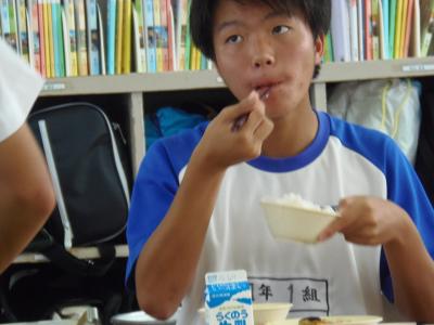 ↓ 「牛乳あまってます」の先生の声に、多くの生徒が反応しました。