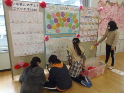 小学4・5年生が、明日の卒業式の準備をがんばっている様子です。