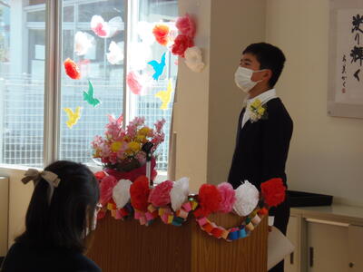 校長式辞では、廣瀬校長先生から小学校最上級生としての頑張りと中学校生活の激励のお言葉をいただきました。