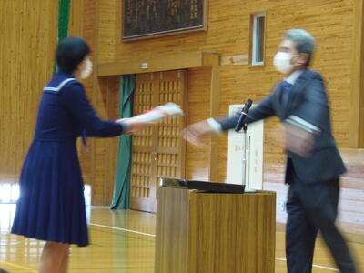 卒業生は、凛とした空気の中、立派な態度で卒業証書をいただきました。