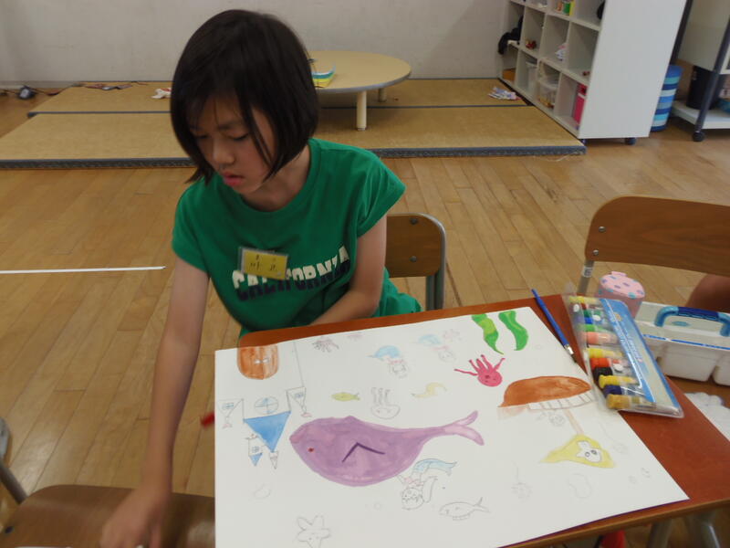 読書感想画を描いています。題材にする本は、自分で選んだそうです。4年生ともなると、静かにもくもくと取り組むことができます。集中力が素晴らしい!