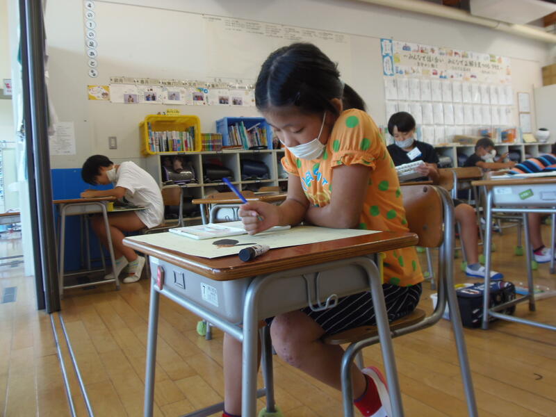 絵が仕上がった人は計算や漢字など、それぞれ学習に取り組んでいました。