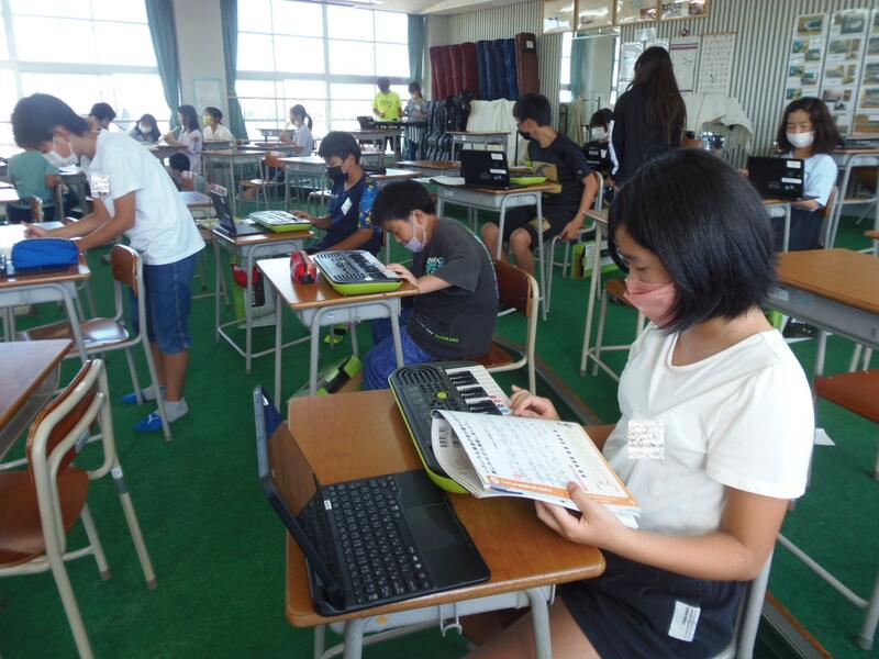 「リボンのおどり」という曲を合奏します。パート練習中です。楽しい曲です。5年生、なかなか上手です。