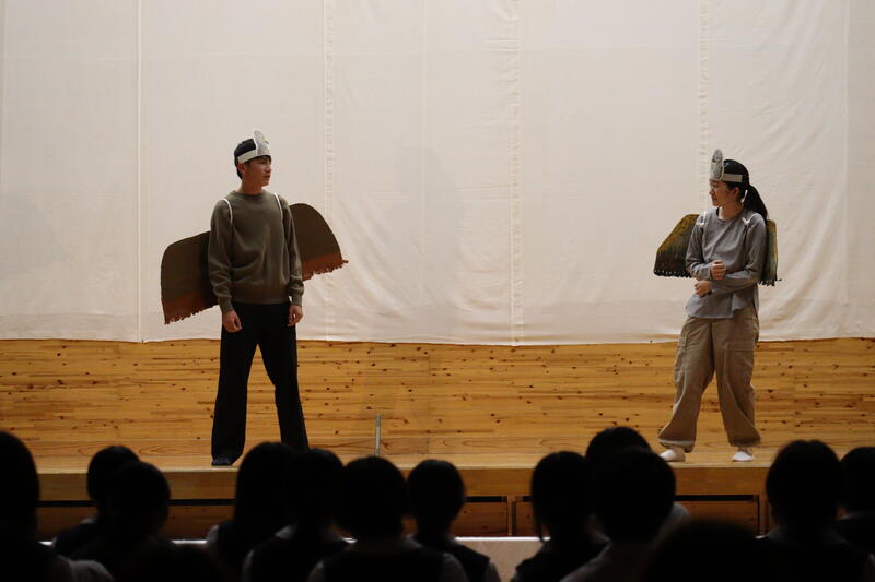 3年生らしい、しっとりと心に沁みる内容でした。3年生も、2回目の学習成果発表会、初めての劇への挑戦ということでしたが、演技・構成ともにレベルの高い仕上がりで、最高学年としての実力を見せてくれました。「幸せは自分で作り出すもの」この劇のように、中学校を卒業しても、お互いに支え合い、つながり合いながら、困難に立ち向かってほしいと思いました。