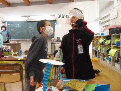 小学1年生は、作品を作っていました。色とりどりで個性的な作品が多かったです。