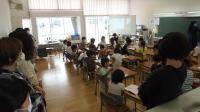 ↓ 小学1年生は、体育の授業で集団行動とラジオ体操に取り組んでいました。休めの姿勢がしっかりできています。