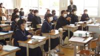 ↓ 4時間目に授業の様子です。中学3年生は、英語の授業です。2人組になって英文の問題を出し合っていました。さすが3年生、受検生として自覚がみられました。