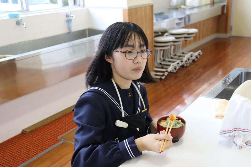 中学2年生は調理実習でだご汁といきなりだんごを作っていました!にんじん、ごぼう、こんにゃくなど、たくさんの具材を切ったり、「だご」を練ったりちぎったり。作業がたくさんあって大変でした。協力し合って頑張っていました!