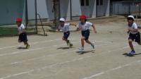 ↓ 50m走です。下八重先生から速く走るコツを教わり、がんばりました。