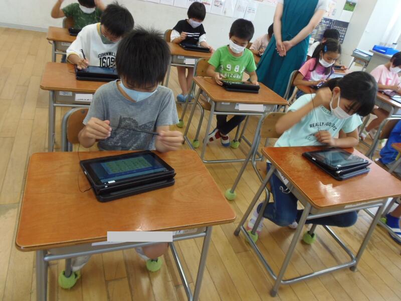 すでにタブレットPCで観察メモをさくせいしていて、そのメモをもとに、タッチペンを使って書いています。みんなタブレットPCを使いこなしていますね!すごい!