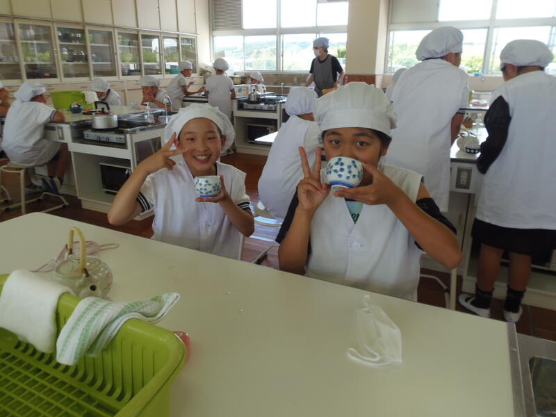 中学校の鎌田先生と一緒に、調理実習等の際の服装、安全なお湯の沸かし方、おいしいお茶の入れ方について学習しました。みんなでいれたお茶、とってもおいしかったです!