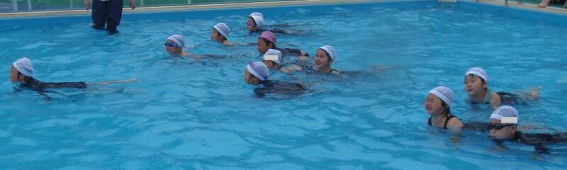トップバッターは小学1年生。初めての小学校のプールにどきどきわくわくでした!