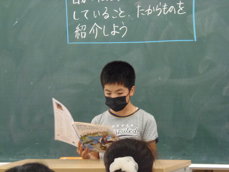 小学6年生は外国語の時間でした。自分の名前、住んでいるところ、好きなことなどを英語でスピーチしました。みんなとても上手です。
