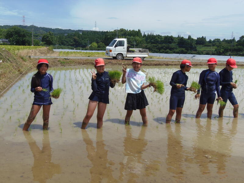 感想発表では、「手で植えると大変。機械は便利だなあと思いました。」「初めて田植えをしたけど、たのしかったです。」など、それぞれに発表することができました。収穫の日が楽しみです。