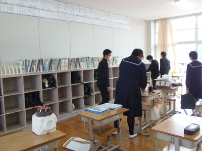 中学3年生は、公立後期選抜と特別支援高等学校の入試を受けない生徒が、一年間使った教室の清掃をしていました。受検している友だちのことも気にかけながら、教室などを隅々まできれいにしていました。