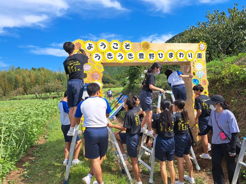 「うきうき豊野ひまわり園」が9月20日(火)に開園しました!今週末から来週にかけて花も咲きそろい、見ごろになることでしょう。今年度は豊野小・中学校の小学3年生、中学3年生が、地域の方々のご協力を得ながら、顔はめパネルやオリジナルメッセージカード、プロモーションビデオなどを企画・制作しました。皆様のご来場、お待ちしております!