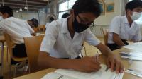 ↓ 中学生は、5・6時間目に秋吉先生を講師に迎え、就職ガイダンスを実施しました。