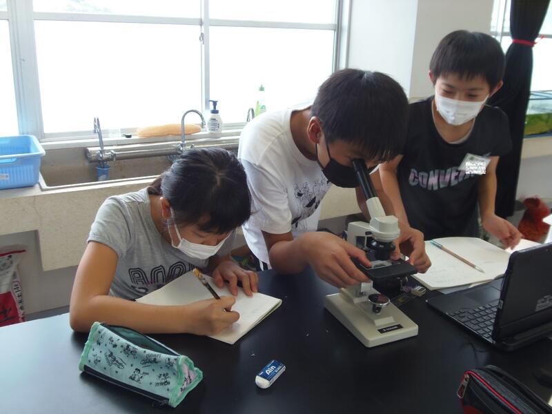 小学5年生 理科 花粉を観察しています。わくわくしながら活動する5年生です。