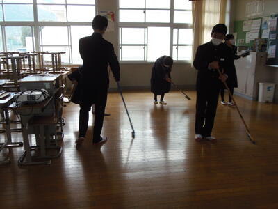中学3年生は、公立後期選抜と特別支援高等学校の入試を受けない生徒が、一年間使った教室の清掃をしていました。受検している友だちのことも気にかけながら、教室などを隅々まできれいにしていました。