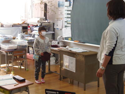 今日は、証書授与の動きの確認がありました。友達と受け渡しの練習に繰り返し取り組んでいました。