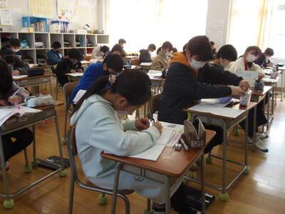2月28日(月)授業の様子(中学3年生、小学1年生)