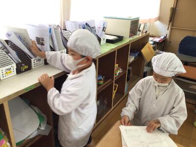 給食時間、早く準備が終わった人は進んでクラスの仕事をしてくれています。素晴らしい!