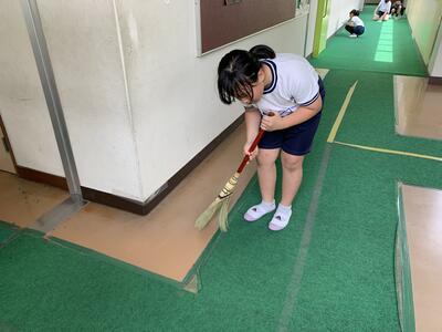 4年生は、掃除を一生懸命しています。