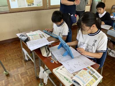 5年生教室にサポート役として授業に入っています。