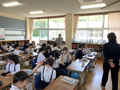 【5年生】中学生が職場体験として5年生教室に来ています!