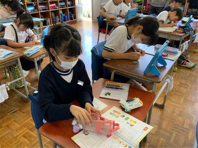 資料に書き込みをし、授業で学んで考えたことなどをまとめる児童が増えてきました。