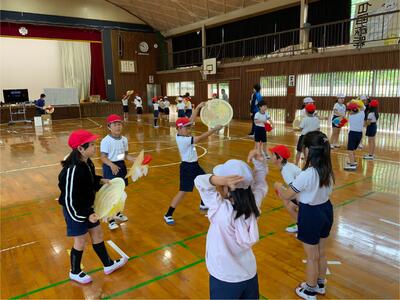 【4年生】3年生に花笠音頭を教える