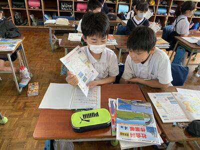 資料に書き込みをし、授業で学んで考えたことなどをまとめる児童が増えてきました。