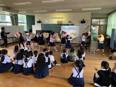 【4年生】3年生に花笠音頭を教える