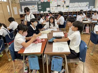 5年生は、家庭科で初めての実習がありました。