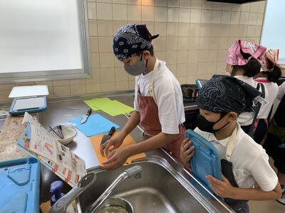 5年生は、家庭科で初めて調理実習に挑戦しました!