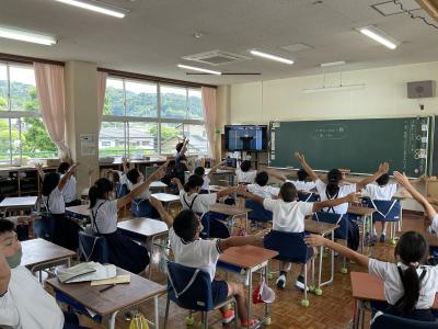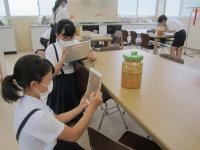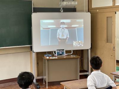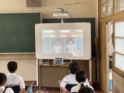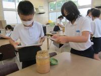 昨年度、益城町とキッコーマンこころダイニング(株)が連携して「発酵×防災プロジェクト」が始まりました。企業と町・学校が連携し、発酵食品の活用を通して、普段の食生活から防災食を取り巻く環境を豊かにする取組は、全国初の事例だそうです。昨年度の1月、3年生が味噌作りを、5年生が醤油作りをしました。新型コロナウイルス感染対策のため、東京の本社から社長の茶谷さんとリモートで発酵食品のことや作り方を学びました。醤油の完成に、半年以上かかるとのことで、6年生になって引き続き仕込んだもろみを混ぜたり、観察をしたりしています。